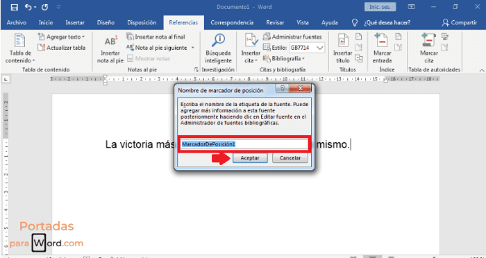 Y listo, ya podrás incluir citas y referencias bibliográficas en tu documento. Igualmente para colocar las fuentes en el sitio donde colocaste un marcador de posición. Solo deberás dar un clic sobre la palabra y luego podrás editar la fuente a tu gusto.