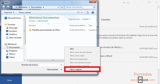 Paso 3: Luego selecciona la opción “Abrir y reparar”. De este modo podrás acceder al archivo nuevamente.